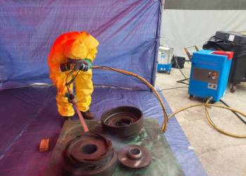 드라이아이스 블라스팅 CLEANING은 드라이아이스 입자를 분사하여 오염물을 제거하는 비연마·비수분 세정 공법입니다.