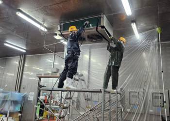 UNIT COOLER 청소란 냉동창고, 냉장창고, 식품 공장, 물류센터 등에서 사용되는 유니트 쿨러(Unit Cooler) 내부에 쌓인 먼지, 기름, 얼음, 곰팡이 등의 오염물을 제거하여 냉각 효율을 유지하고 위생적인 환경을 확보하기 위해 실시하는 유지관리 작업을 말합니다. 유니트 쿨러는 증발기 코일과 팬을 이용해 공기를 냉각시키고 차가운 공기를 공간 내부로 순환시키는 장치로, 장시간 운전되면 공기 중의 먼지와 이물질이 코일과 팬에 쌓여 냉각 성능이 저하될 수 있습니다.